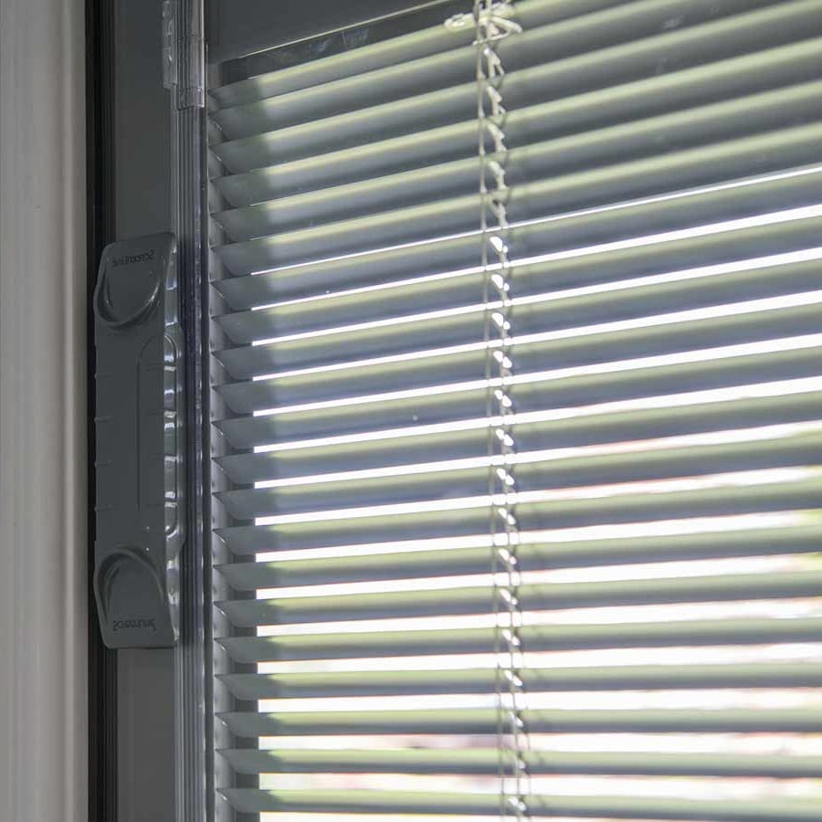 Encased within the double-glazed unit, the Venetian blind is fully sealed to ensure protection from dust and damage. Adjustment is achieved using a discreet magnetic control slider positioned neatly along the frame, allowing smooth and precise operation without compromising the clean lines of the glazing.